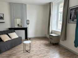 LAVAL rive gauche - Rue du Pont de Mayenne - Quartier animé - Terrasses - Cafés - Commerces appartement type 1 au 2nd étage meublé (loué en bail vide avec prêt de meubles) Composition : pièce principale, coin cuisine aménagée, sde, wc. Equipements : Chauffage électrique individuel. Double vitrage.Localisation : rue piétonne Loyer : 415EUR cc (+ELECTRICITE) LIBRE LE 13 juin 2026