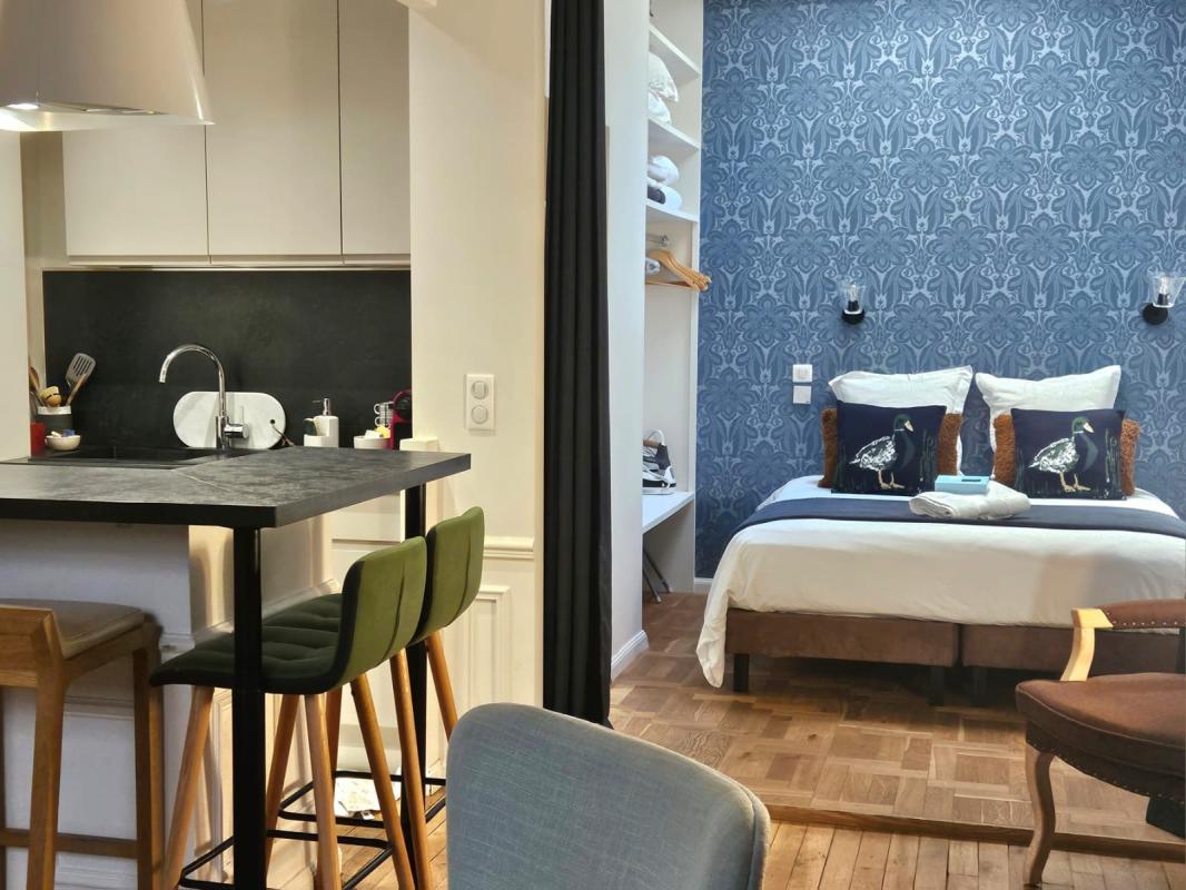 75008 PARIS - GEORGES V. situé rue de Berri à 1 minute de l'avenue des Champs Élysées Au 3ème étage avec ascenseur d'un immeuble recent de haut standing. STUDIO en bon état de 40m2 comprenant une piece principal donnant sur un coin cuisine aménagé et équipée, une salle de bains avec w.c. ideal pies à terre ou investissement. Vue sur une cour calme et arborée.