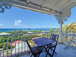 Entrée avec terrasse semi-abritée, une belle cuisine équipée , chambre/pièce à vivre, salle d'eau toilettes avec douche à l'italienne, et cette terrasse abritée !!!!! avec cette vue splendide sur la baie de Anse des Roche et un accès à la plage de cette dernière.