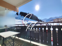 Sa superficie de 27,50 m2 vous offre une agréable pièce de vie donnant sur un balcon ensoleillé avec vue sur les pistes, un coin cuisine, un espace nuit avec lits superposés, une salle de bains et un wc indépendant.