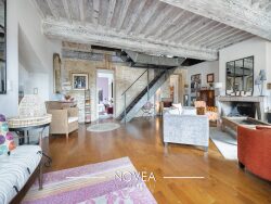 1er niveau: Lors de votre arrivée dans l'appartement par le bâtiment principal, vous serez accueilli par un dégagement composé d'immenses placards. Il mène à la magnifique pièce de vie de 43m2. Orientée Sud, elle accueille une belle lumière. Poutres au plafond, cheminée, mur en pierre, parquet massif, et escalier en acier, tout est fait pour apporter un cachet incroyable à l'espace. Dans la continuité, la splendide cuisine de 22m2 très lumineuse grâce à ses différentes ouvertures, est propice à un espace convivial lorsque vous recevez amis et famille.