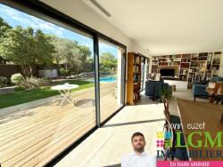 À l'extérieur, le jardin paysager de plus de 1000 m², conçu par un paysagiste de renom, est un véritable écrin de verdure. La piscine idéalement exposée complète ce cadre de vie idyllique.