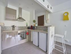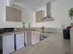 - Une cuisine ouverte tout équipée avec réfrigérateur, four, plaque de cuisson, hotte, cafetière, micro-onde, vaisselles, ustensiles de cuisine.