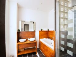 Au 4e et dernier étage (avec ascenseur), vous découvrirez : Un vaste séjour lumineux baigné de lumière naturelle Une cuisine ouverte élégante, entièrement équipée Trois belles chambres, spacieuses, confortables, avec dressing Une salle de bain avec baignoire et douche Des WC séparés Une buanderie pratique