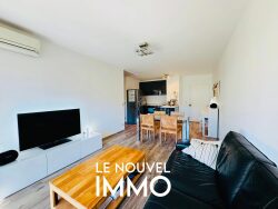 Il se compose comme suit : En passant la porte, vous découvrez un appartement fonctionnel et lumineux, bénéficiant d'une belle exposition plein sud. La pièce de vie s'ouvre directement sur un extérieur soigné, avec une petite terrasse et un jardinet, donnant sur un parc intérieur calme de la copropriété. Un véritable atout, rare sur le secteur, qui apporte verdure, intimité et qualité de vie au quotidien. La rénovation réalisée en 2022 offre un intérieur moderne et agréable, prêt à vivre.L'appartement est équipé de la climatisation et de la fibre optique, assurant un confort optimal. L'exposition plein sud est idéale pour profiter tout au long de l'année des 30 m² de terrasse et jardin. Une place de stationnement extérieure privative complète le bien. La résidence est sécurisée, très bien entretenue, et particulièrement calme, ce qui en fait un cadre de vie rassurant et agréable.