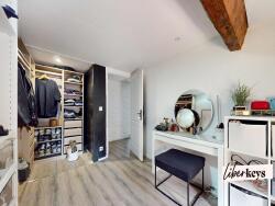 Poussez la porte de cet appartement de 58m² et découvrez une belle pièce de vie, baignée de lumière, où le mur en pierre et les poutres apparentes donnent le ton: Ici le charme de l'ancien rencontre la modernité.