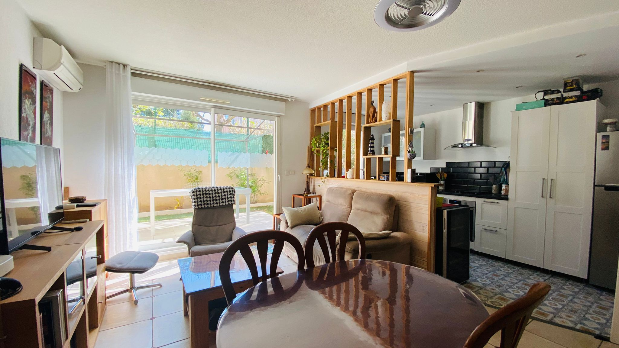 SUPERBE APPARTEMENT T3 59m2 AVEC JARDIN - LA SEYNE SUR MER A quelques minutes du centre-ville, du port et des commerces, venez découvrir ce superbe appartement 3 pièces situé en rez-de-jardin, qui offre: Un beau séjour avec cuisine ouverte de 25m2, donnant sur une superbe terrasse de 38m2 exposée SUD-OUEST avec jardinet de 52m2, une salle d'eau, deux belles chambres avec placards et un WC séparé. Deux stationnements en supplément pour 18 000 euros. Bâtiment basse consommation, faibles charges.