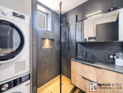 - Une vaste entrée avec placards de 5,4 m², idéale pour vous dévêtir. - Une grande pièce de vie lumineuse de 35 m² avec cuisine ouverte toute équipée de la marque Ixina. Vous apprécierez le soin particulier porté à cette pièce. - 2 belles chambres (dont une fait actuellement office de dressing). - Une magnifique salle de bain carrelée avec douche à l'italienne. - WC séparé.Pour vous stationner et accueillir vos proches, vous bénéficierez d'un grand garage fermé, ainsi que de 2 places de stationnement privatives.
