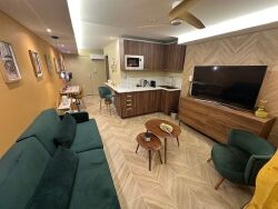 Finitions soignées : Sol effet parquet, décoration contemporaine (tasseaux bois, murs colorés), aucun travaux à prévoir.