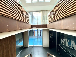 Dès l'entrée, vous serez immédiatement conquis par l'atmosphère singulière et les volumes exceptionnels de ce bien. Le rez-de-chaussée propose un univers dédié au confort et au bien-être avec une salle de cinéma privée, une piscine intérieure, un espace douche, un vestiaire, une cuisine de service ainsi qu'un local technique parfaitement aménagé.