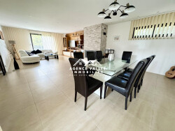 Rez-de-chaussée : Une entrée avec dressing desservant la pièce à vivre, la pièce à vivre est composée d'un séjour - salle à manger avec cheminée panoramique (insert) et dune cuisine dinatoire entièrement équipée et aménagée avec accès terrasse et jardin, une suite parentale avec salle d'eau et accès terrasse - jardin également, un wc indépendant avec lave-mains et d'un cellier / buanderie / chaufferie / arrière cuisine avec accès garage et terrasse. Etage (accès depuis la pièce à vivre) : Un palier desservant un wc indépendant avec lave-mains, un dressing aménagé entièrement (possible chambre), une suite parentale avec salle d'eau /wc et terrasse de 15m², deux chambres avec accès à une seconde terrasse de 10m² dont une avec un accès à une salle de jeux et une 5ème chambre avec dressing. Annexes et extérieur : Grand garage double 5x5.3m (hauteur 3.50m² et avec porte motorisée d'une hauteur de 2.70m²), terrain clos avec portail motorisé, possibilité de stationner 6 véhicules - terrasse de 30m² et chalet de jardin.