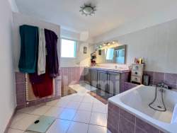 En exclusivité, seulement chez Ikami, découvrez cette magnifique maison de 149 m2, située dans un quartier calme et très recherché de Romans sur Isère. Bâtie avec des matériaux de qualité, cette spacieuse et lumineuse demeure se compose : D'une pièce de vie de 70 m2 exposée sud/ est/ ouest, D'une belle cuisine équipée et aménagée très fonctionnelle et son cellier, le tout ouvert sur un terrain sans vis-à-vis , clos, plat et arboré, D'un WC. La partie nuit offre 3 grandes chambres d'environ 13 et 16 m2, tout équipées de dressing aménagés. Une salle de bains avec douche et baignoire et un wc séparé. Equipements : Fibre, volets roulants électriques et double vitrage, chaudière récente, nombreux stationnements, garage avec porte motorisée, portail électrique, sous-sol carrelé et aménageable, récupérateur d'eau et piscine hors-sol, barbecue. Proche de toutes les commodités tout en étant au calme, et retirée du centre ville. Ce bien parfaitement entretenu est prêt à accueillir votre famille, pour lui offrir de beaux moments conviviaux et chaleureux. - Annonce rédigée et publiée par un Agent Mandataire -