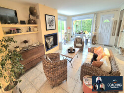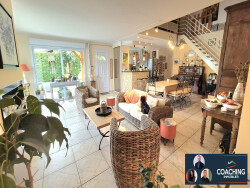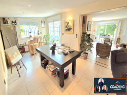 elle se compose d'une entrée, un grand séjour double (salon/salle à manger) avec une cuisine ouverte, un wc, une salle de bain, une chambre, une buanderie, un garage et une cave. A l'étage: une mezzanine avec placards, 2 chambres dont une avec placards, un wc et une salle de bain. A l'extérieur: une grande terrasse avec une piscine chauffée, une dépendance le tout sur un magnifique terrain clos et arboré.