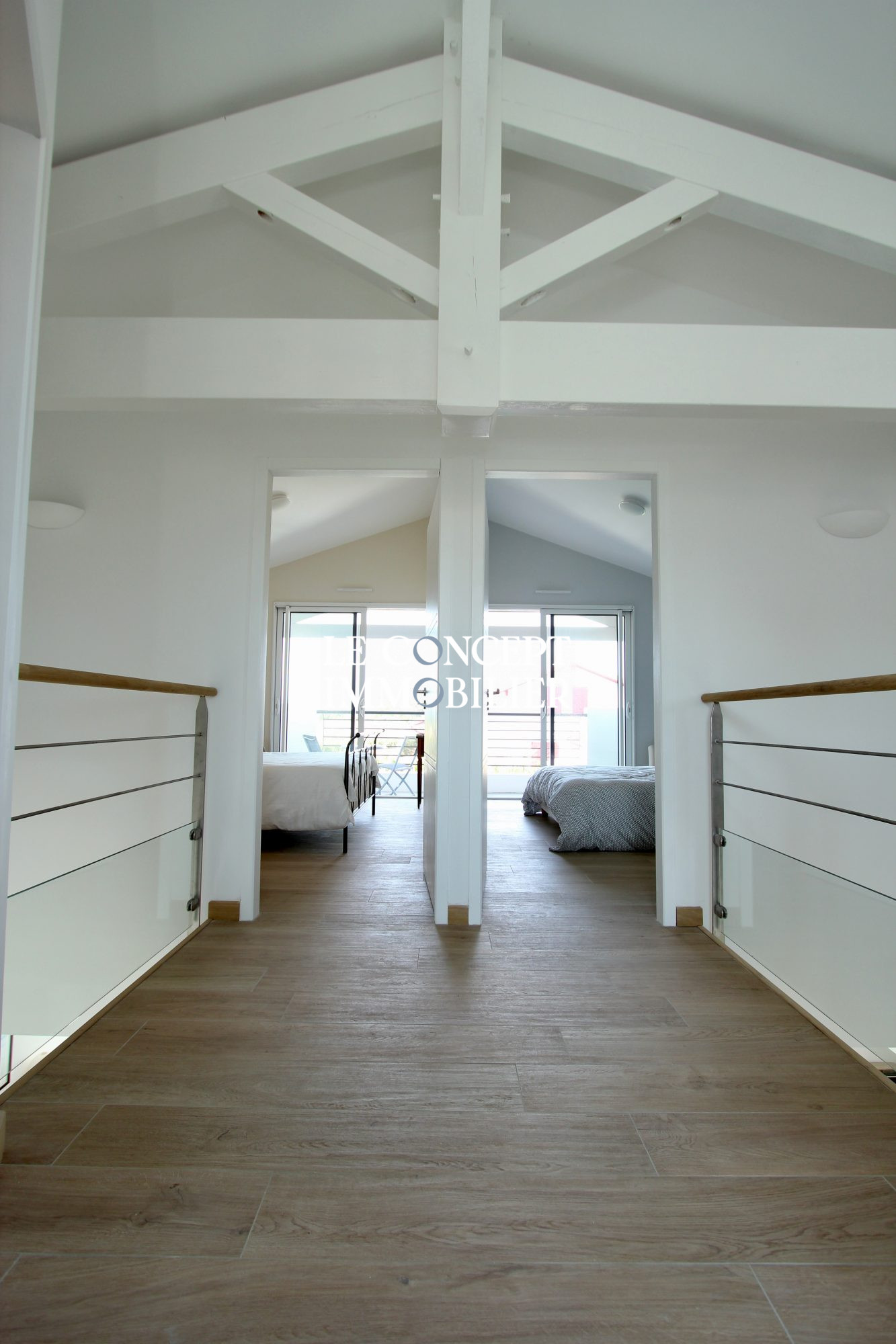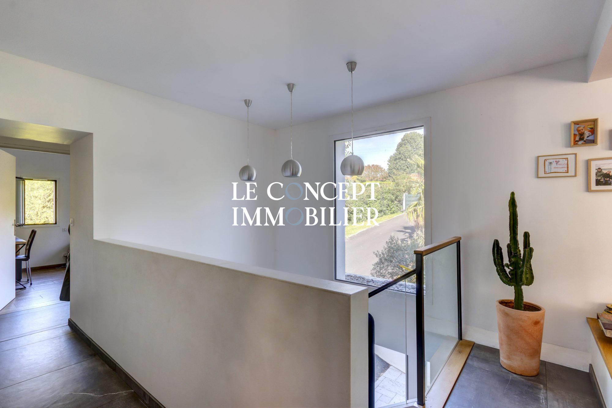 Un superbe escalier mène à l'étage occupé par une vaste suite parentale.