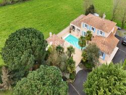 Le coin nuit bien distinct se compose au rez-de-chaussée de trois chambres dont une suite parentale donnant sur la piscine avec salle de bains et dressing, une salle d'eau et à l'étage d'une mezzanine, de trois chambres bénéficiant d'une salle de bains.