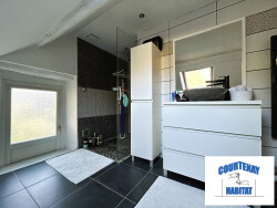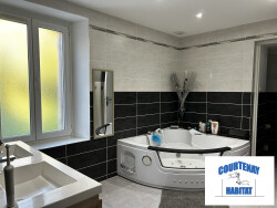 Le rez-de-chaussée propose également une belle chambre, une salle de bains avec baignoire balnéo ainsi que des WC séparés.