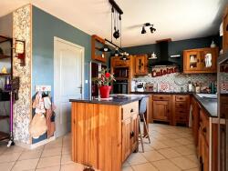 À l'intérieur, cette maison de plain-pied construite en 2009 présente une belle surface de 112 m². Elle se compose d'une cuisine ouverte sur un lumineux séjour, de trois chambres confortables, d'une salle de bain et d'un WC. Les menuiseries en double vitrage et la baie vitrée assurent une luminosité naturelle, tandis que l'ossature bois garantit solidité et isolation.