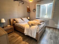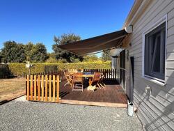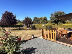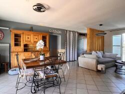 À l'intérieur, cette maison de plain-pied construite en 2009 présente une belle surface de 112 m². Elle se compose d'une cuisine ouverte sur un lumineux séjour, de trois chambres confortables, d'une salle de bain et d'un WC. Les menuiseries en double vitrage et la baie vitrée assurent une luminosité naturelle, tandis que l'ossature bois garantit solidité et isolation.