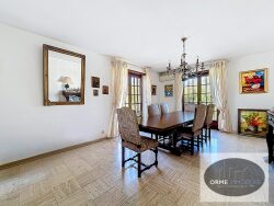 Située dans un cadre exceptionnel, en lisière de forêt/champs et à proximité d'un cours d'eau, découvrez cette spacieuse maison de plain-pied construite en 1976, offrant 210 m² sur un terrain de 9,31 ares. Dès l'entrée, vous serez séduits par ses volumes généreux et sa luminosité. Elle se compose d'une belle pièce de vie avec salon, salle à manger et cheminée, idéale pour des moments conviviaux, ainsi que d'une vaste cuisine séparée, aménagée et équipée, donnant accès à un balcon. Toujours de plain-pied, vous trouverez : Trois grandes chambres Une salle de bain avec baignoire et douche Un WC séparé À l'étage, une spacieuse mezzanine offre un fort potentiel d'aménagement, complétée par une pièce d'eau avec douche et WC ainsi que des combles aménageables. Le bien dispose également d'un sous-sol complet, comprenant : Un double garage De nombreux espaces de rangement Une buanderie Une cave à vin Une pièce aménagée (salle de jeux, bureau, espace loisirs ) À l'extérieur, vous profiterez d'un beau jardin paysager avec piscine chauffée, dans un environnement calme et verdoyant, idéal pour les amoureux de nature. Chauffage au fioul. Volets électriques Climatisation Un bien rare, alliant volumes, potentiel et cadre de vie privilégié. DPE : D GES: C Honoraires agence inclus charge acquéreur 5 % TTC
