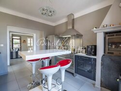 **Prix en baisse** Située en coeur de village de Ponteilla au sud de Perpignan, imposante maison de village entièrement rénovée avec goût et matériaux de qualité tout en respectant le caractère d?origine de cette superbe bâtisse. Totalisant près de 300m² habitable cette maison en pierre de cayrou construite sur 3 niveaux offre une double entrée, la 1ère se situe en rez-de-rue et s?ouvre sur un patio / jardin à l?abri des regards de 60m² menant par de larges baies pouvant s?ouvrir complètement sur un grande pièce ouverte idéale en salon d?été. Un garage de plus de 130m² complète ce niveau. La 2ème entrée se situe en rez-de-chaussée et s?ouvre sur un salon lumineux et élégant avec cheminée, une cuisine séparée équipée haut de gamme, une 1ère chambre avec cheminée et une suite parentale avec salle d?eau attenante. Le niveau supérieur comprend 2 chambres dont une majestueuse suite parentale de 46m² avec superbes hauteurs sous plafond, poutres apparentes, une salle de bain attenante, un grand bureau de plus de 30m² exposé sud et dominant le massif des Albères. Une cave de 61m² complète ce bien atypique et pourrait être aménagée en espace de vie supplémentaire.
