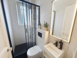 Au premier étage, l'espace nuit propose trois belles chambres, accompagnées d'une salle d'eau moderne et d'un WC.