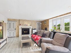 D'une surface habitable d'environ 250 m², la maison se compose d'un vaste séjour lumineux de 47 m² équipé d'un insert à granulés, idéal pour des moments chaleureux en famille.