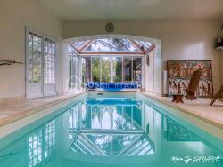 Espaces pratique et de loisirs : une chaufferie, un pool house d'environ 80m² avec piscine chauffée de 3x8m, une salle de douche avec wc, une pièce servant de rangement et buanderie.