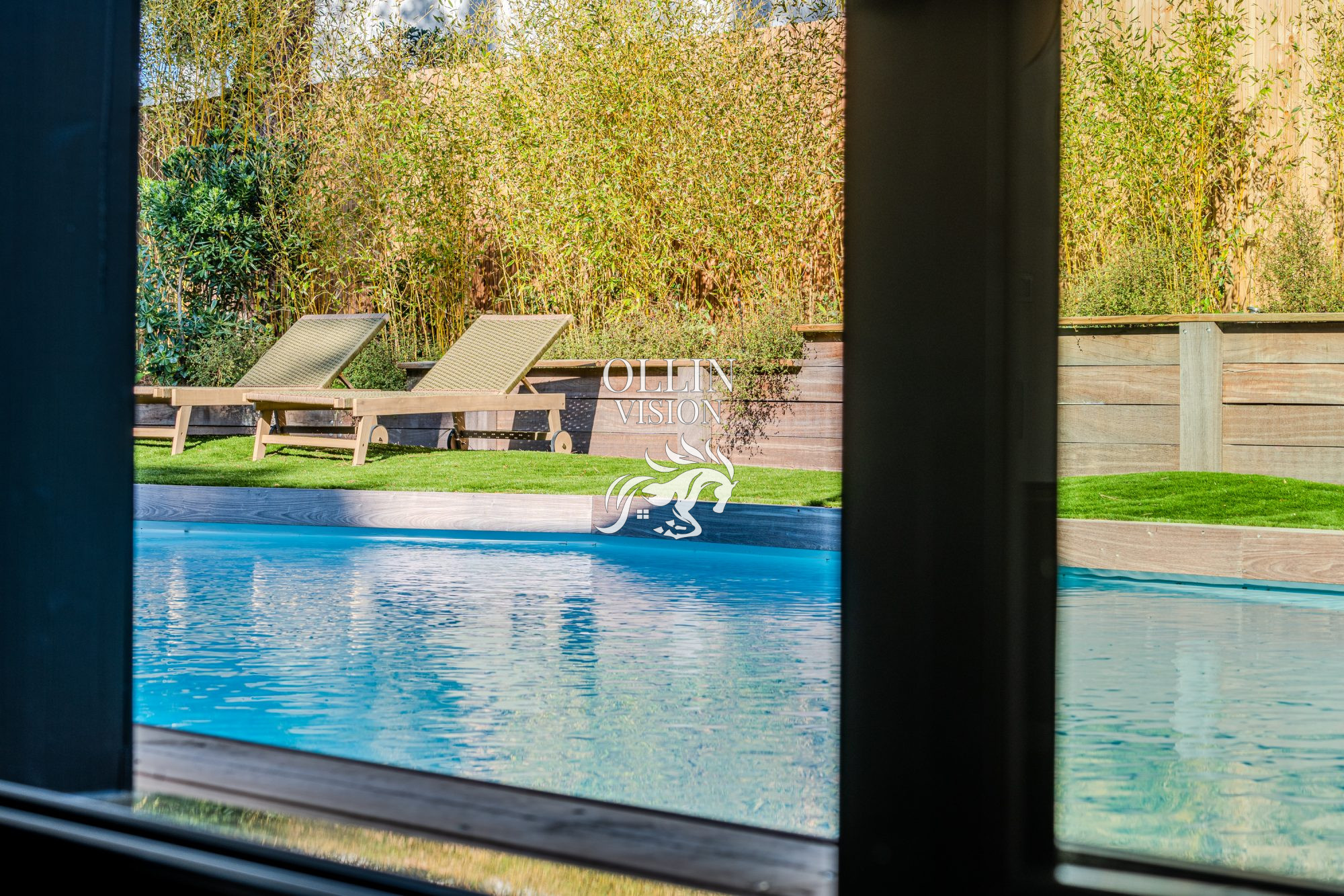 D'ici, on accède au jardin arboré où une grande terrasse ensoleillée, faisant face à la forêt, accueille une piscine, une pergola et un accès à un cabanon de plus de 15 m2.