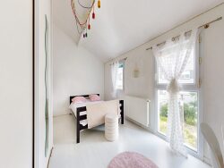 Une seconde chambre de 14m² avec placard intégré orientée Nord. Un espace bureau de 16m² pouvant être transformé en chambre. Une mezzanine de 7m² est accessible. Une salle d'eau avec douche et baignoire.