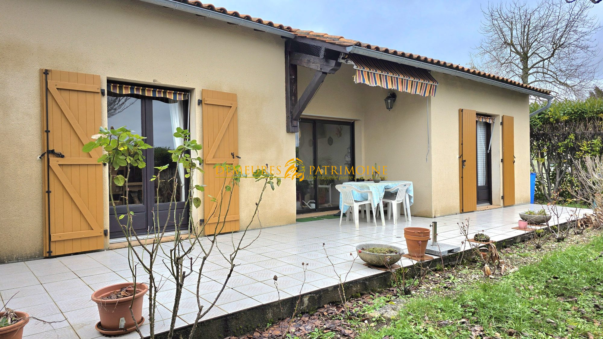Cette splendide propriété de 142 m² habitables est située sur un domaine de 12944 m² de terres avec de multiples essences d'arbres fruitiers, de la prairie, un puit, un abri à bois, une terrasse extérieure et des vignes.