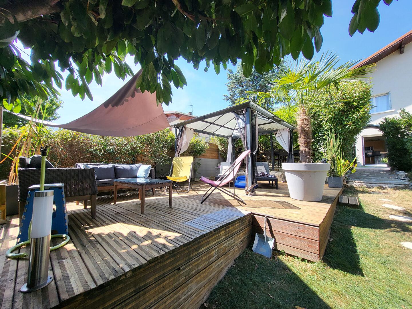 Beaucoup de charme pour ce bel appartement T3 duplex de 62,57m2 (superficie plancher de 89m2) situé sur le haut de Saint Pierre d'Albigny, à 2 pas des écoles, avec jardin d'environ 140m2 clos et arboré. dans petite copropriété gérée par un syndic bénévole. Charges mensuelles de 42EUR/mois. En parfait état, il est composé au rez-de-chaussée d'une entrée avec placard, 1 WC avec lave-mains, 1 beau séjour de 27,75m2, d'une cuisine séparée de 9,58m2 donnant sur jardin avec terrasse couverte, A l'étage : couloir avec rangements, 2 chambres, 1 salle d'eau avec espace machine à laver, 1 WC séparé. Chauffage électrique. Volets roulants électriques + volets solaires à l'étage pour les vélux neufs.Moustiquaires posées dans le séjour, la salle de bains et les 2 chambres. Store banne à l'extérieur. En sus petit chalet en bois avec courant, à usage de rangements équipé d'un détecteur de lumière. Point d'eau extérieur + prise de courant.. Assainissement collectif. Place de parking privative. Taxe foncière 950EUR/an. RARE !!!! A VISITER RAPIDEMENT Les informations sur les risques auxquels ce bien est exposé sont disponibles sur le site Géorisques : www.georisques.gouv.fr