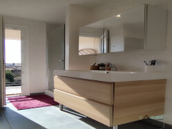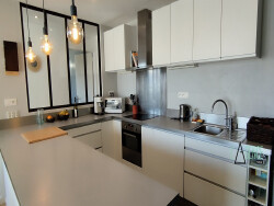 Derrière Villa Primerose et la cité administrative , Grand appartement T3 meublé de 100m² situé au 2ème étage d'un petit immeuble en très bon état, Il se compose d'une entrée avec placards, un grand séjour avec salle à manger, une cuisine américaine aménagée et équipée, deux chambres, une salle d'eau avec baignoire et douche donnant sur un petit balcon, une une buanderie. Un grand box de garage complète ce logement.