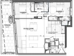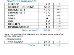 Cet appartement de 93,6m2 est situé au 2è étage, plein front de mer, exposé sud-ouest. Le séjour de 50,8m2+cellier et la suite parentale s'ouvrent sur une superbe terrasse de 23,3m2. La deuxième chambre possède aussi sa propre salle d'eau. Placards dans chaque chambre. Dans l'entrée : wc séparés et placards. Parking sous sol inclus.