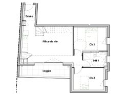 - pièce de vie traversante de 27m2 (possibilité configurer une seule chambre sur le premier niveau pour avoir une pièce de vie traversante de 40m2)
