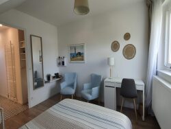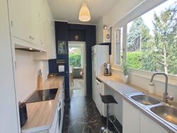 Elle se compose, au RDC: - d'une entrée - d'une vaste pièce de vie avec coin repas - d'une cuisine indépendante, équipée - d'une première chambre - d'une seconde chambre - d'un bureau - d'un dressing - de deux salles d'eau avec WC - d'un autre WC indépendant - d'un garage attenant