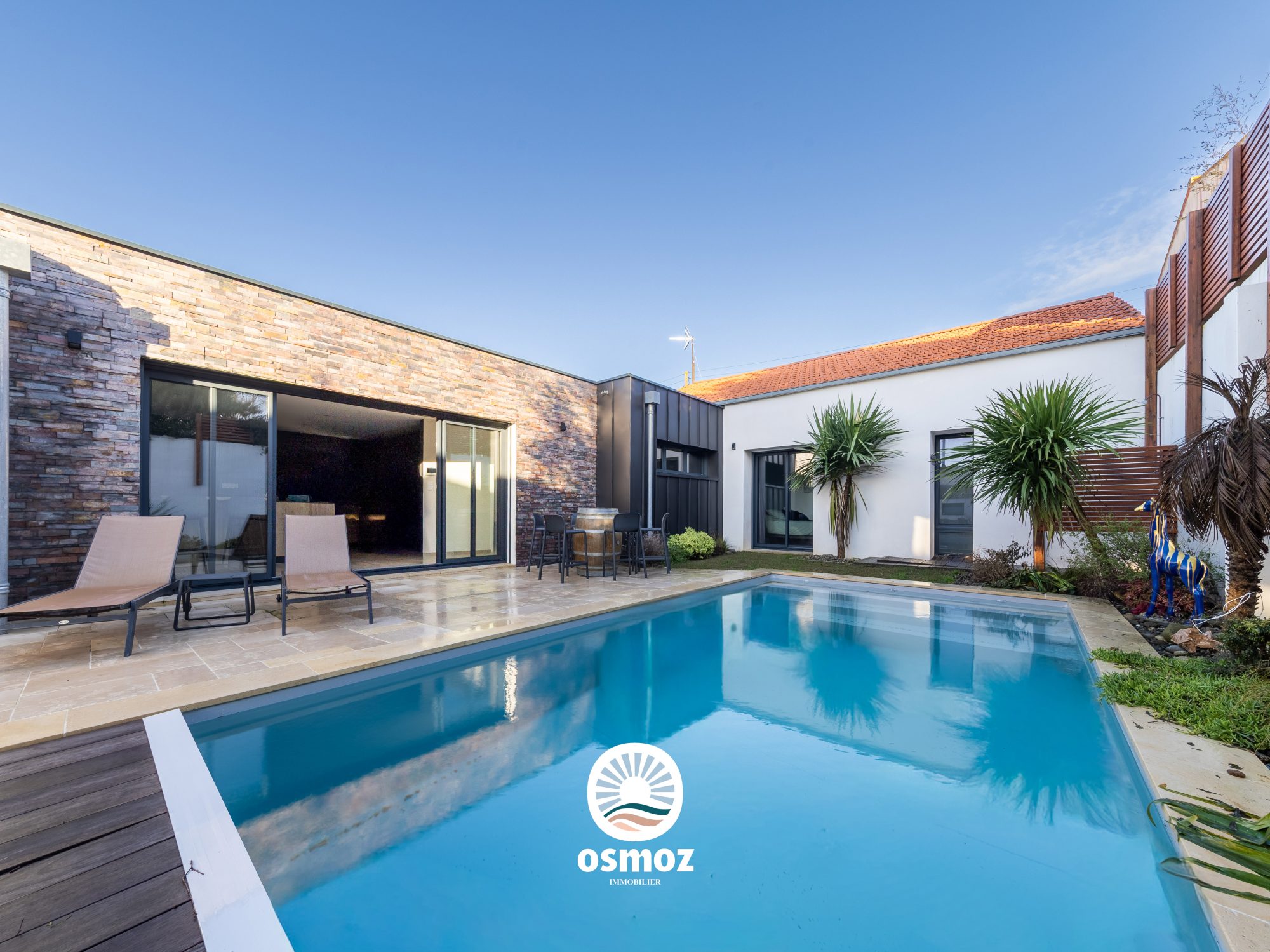 Maison Désoulière vous présente, à 10' à vélo du centre-ville de La Rochelle (Porte Dauphine), cette villa d'exception au style contemporain, située à proximité immédiate des commerces, des écoles et de la boulangerie à pied.