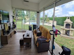 Sur la commune de Saint-Léon, à 4mn de l'échangeur de Damazan, 10mn de Casteljaloux et ses commodités, 30min d'Agen,1h de Bordeaux et 1h30 de Toulouse, venez découvrir cette splendide villa de plain pied située dans un écrin de verdure, avec son parc paisible de 5000m2 entièrement clôturé. En entrant, vous serez séduits par le vaste salon/séjour, très lumineux par son exposition plein sud et ses grandes baies vitrées à galandage. Le poêle à granules, la climatisation réversible et la décoration contemporaine viennent souligner l'aspect chaleureux de cette pièce. Vous pourrez également profiter d'une cuisine ouverte et entièrement équipée, très fonctionnelle, avec électroménager de haute qualité. Vous aurez également l'accès à une arrière-cuisine, toute aussi équipée, qui vous conduira à une vaste cave. En enfilade du salon/séjour, vous découvrirez une magnifique véranda baignée de lumière et également climatisée. En partie nuit, on retrouve trois chambres avec placards intégrés, dont une avec dressing, une salle d'eau avec un grand meuble double-vasque et douche à l'italienne, ainsi qu'un WC. Vous pourrez également profiter d'un immense espace de stockage composé de 4 garages avec leur propre portail électrique, dont un équipé d'une fosse et atelier avec WC (idéal artisan). L'ensemble du bien est équipé de menuiseries ALU double-vitrage, volets électriques, chauffé par un poêle à granule de haute qualité, convecteurs électriques en appoint et sécurisé par un système de vidéosurveillance , pour un confort optimal. En extérieur, vous serez séduits par un superbe jardin de 5000m2 entièrement plat, sur lequel on retrouve une piscine sécurisée de 8x4 au chlore avec fonction jacuzzi et contre-courant. On retrouve également une terrasse de 30m2 avec accès sur une cuisine d'été. Un bien recherché, sans travaux aucuns, à proximité de tous les commerces mais sans nuisances aucunes, à visiter sans tarder ! Pour plus d'informations, l'agence AU CENTRE DE L'IMMOBILIER se tient à votre disposition par l'intermédiaire d'Antony LERAY, RSAC 91.721.969 au 06.03.74.43.88 ou au 05.53.96.52.20.