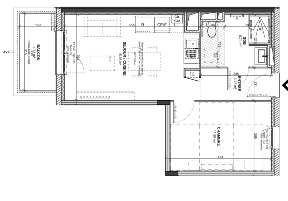 Il est vendu avec une place de parking privative comprise dans le prix. Un place de parking couverte en sus est prévue pour 8.000€ de plus.