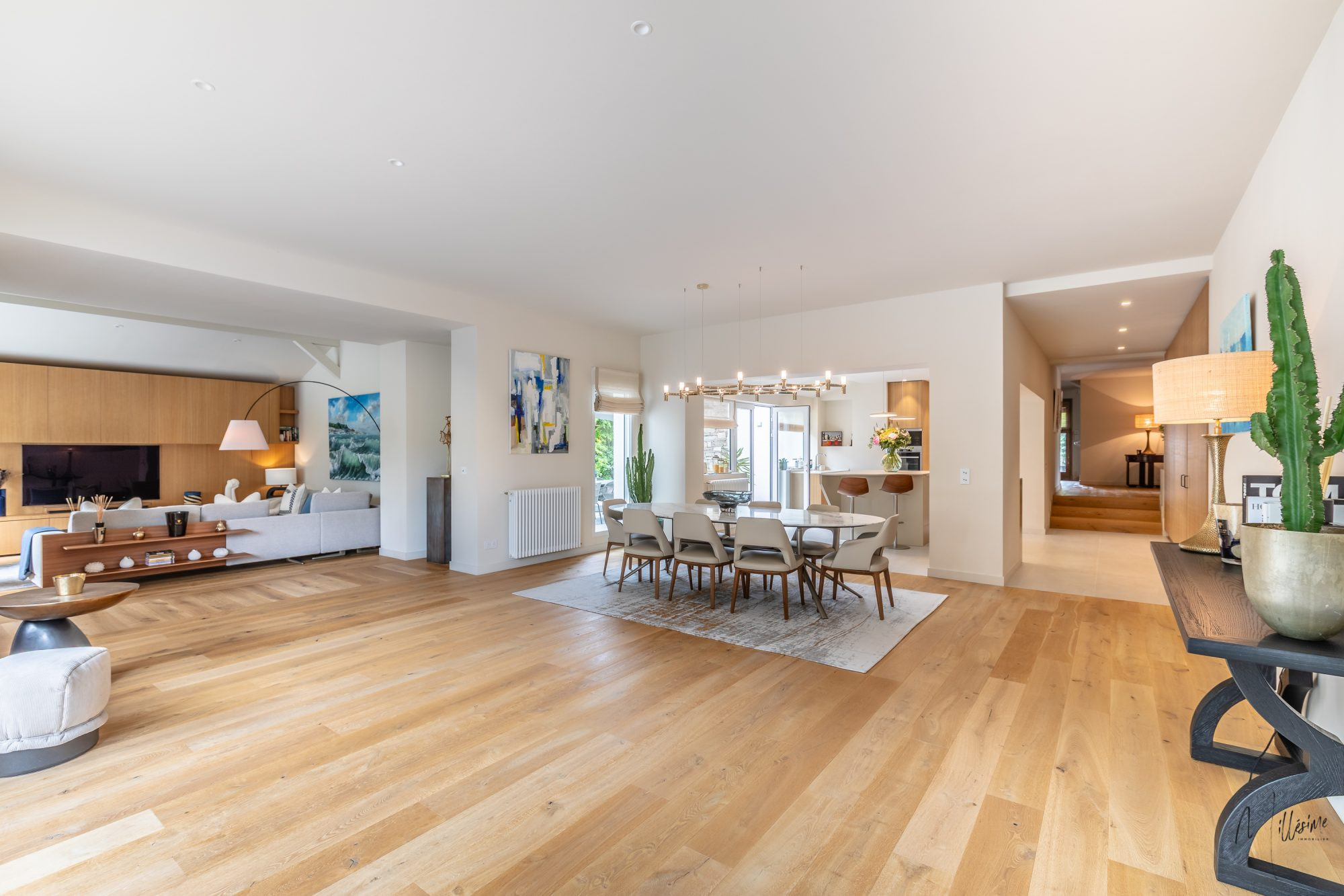 Au rez de chausse?e, une vaste entre?e dessert un séjour de 80m2 baigné de lumière avec ses nombreuses ouvertures et sa vue exceptionnelle, un salon, une cuisine indépendante, une buanderie et des toilettes.