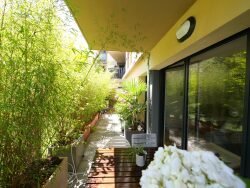 Dans un immeuble neuf situé à 150 m du Tram Suresnes-Longchamp. Très beau 2 pièces en rez-de-jardin, comprenant entrée, vaste séjour parqueté avec terrasse de 18 m2 orientée Est, cuisine contemporaine équipée, chambre parquetée accès terrasse, salle de douche, WC. Cave et grand emplacement de parking en sous-sol.