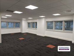 KERMARREC ENTREPRISE NANTES vous propose à la location sur l'est de Nantes au coeur d'une zone tertiaire, un plateau de bureaux. Cette surface de 275 m² (quote part de parties communes incluses) se situe au rez de chaussée d'un immeuble à usage de bureaux. Elle comprends deux beaux open spaces lumineux, 3 bureaux individuels, un espace avec arrivées eau avec un accès extérieur, un espace archives, des sanitaires et un local technique. Jouissance de 14 places de parkings Un environnement calme et entretenu pour ce parc tertiaire qui offre une qualité de travail A visiter !