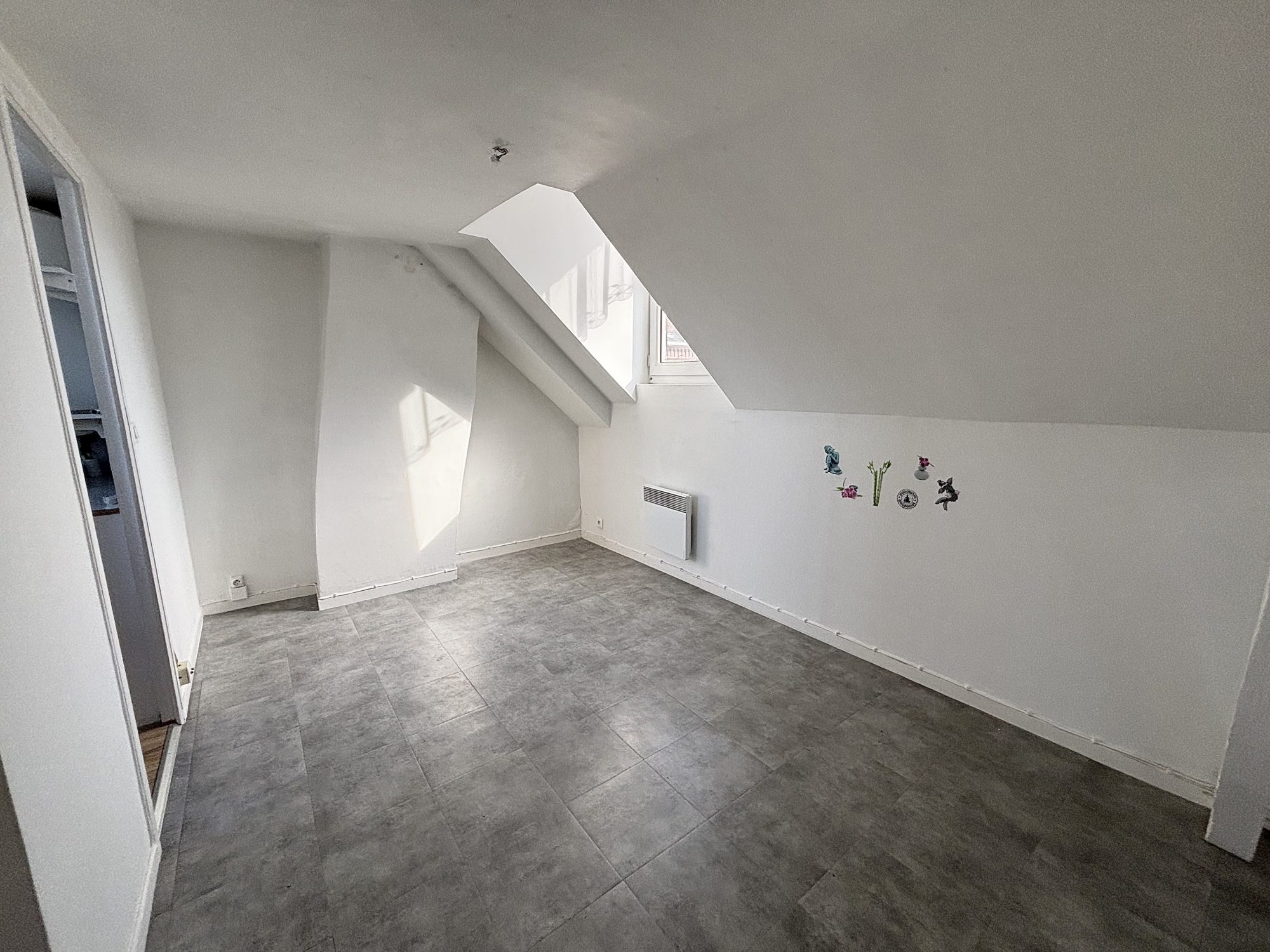 Ce logement est composé d'un hall d'entrée, d'un séjour, donnant sur une cuisine aménagée (meubles hauts et bas, hotte aspirante, plaque vitrocéramique de 4 feux) , une salle d'eau , un WC .