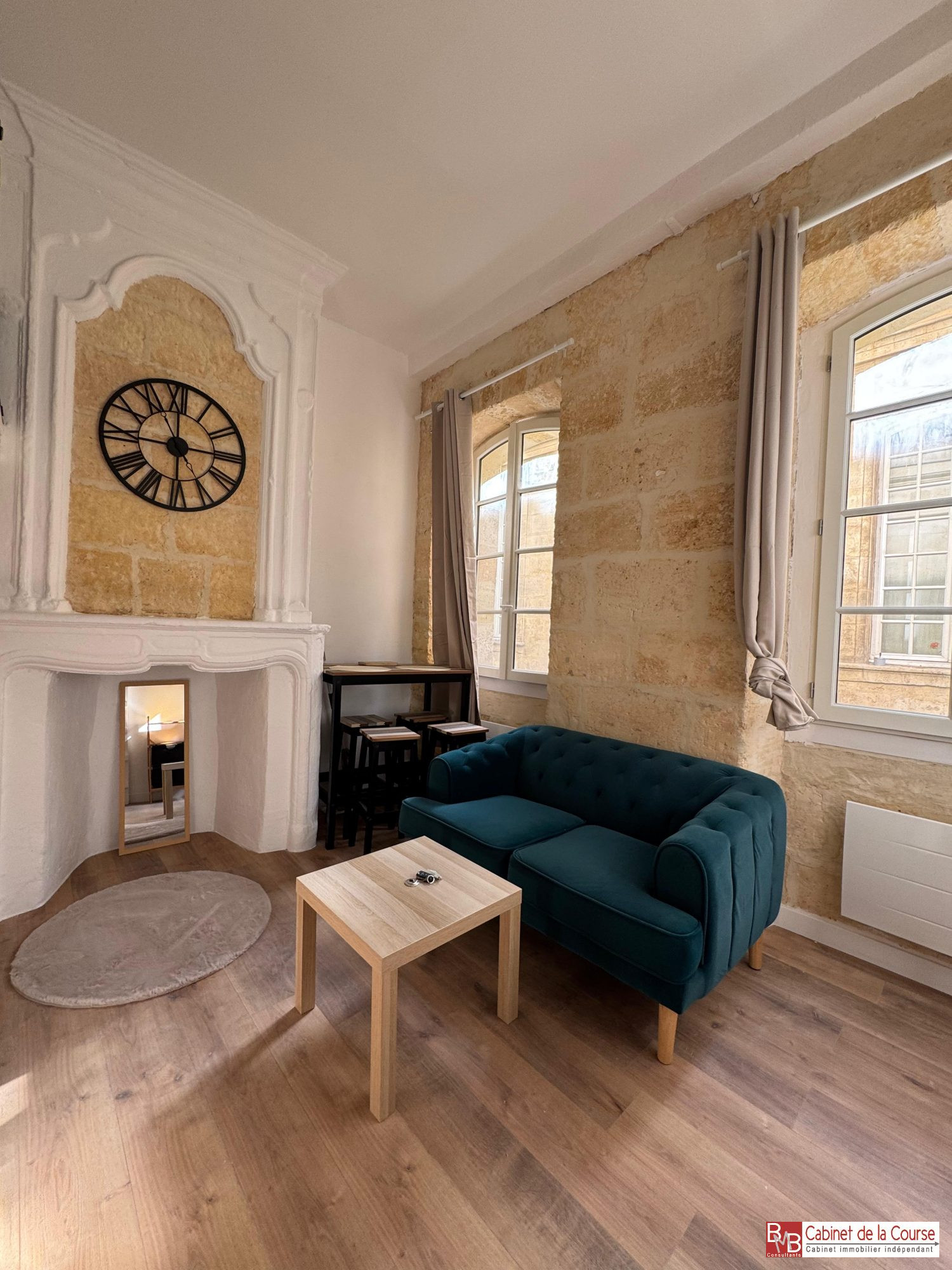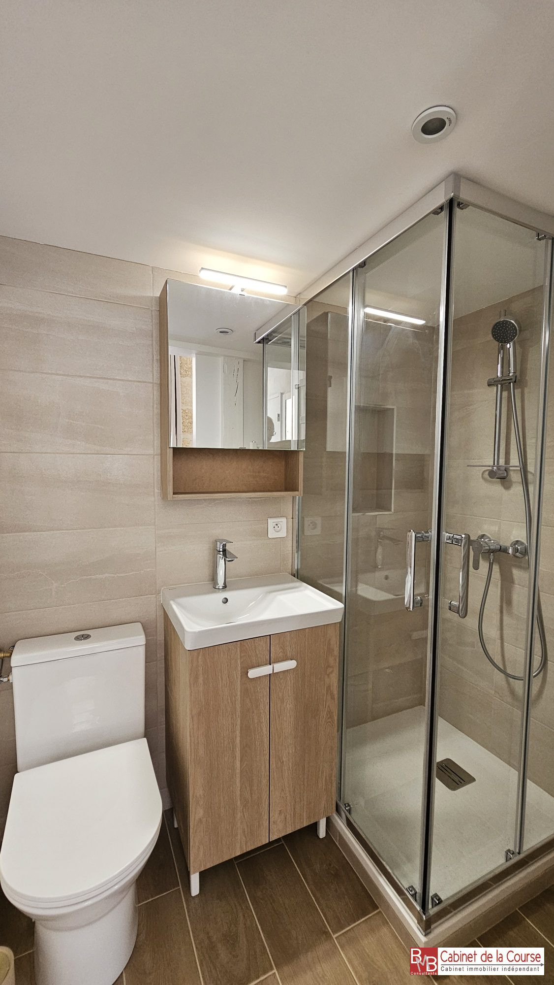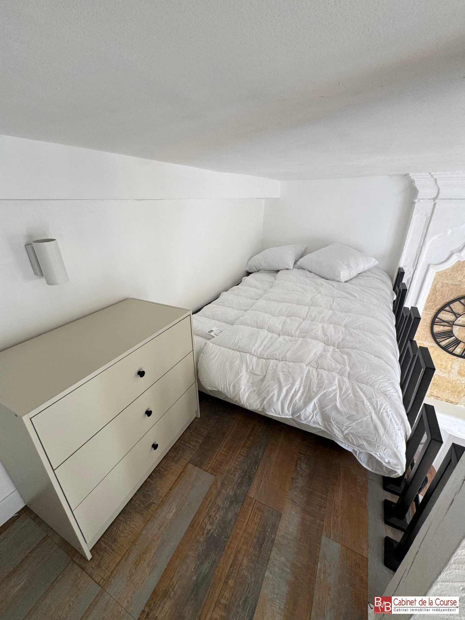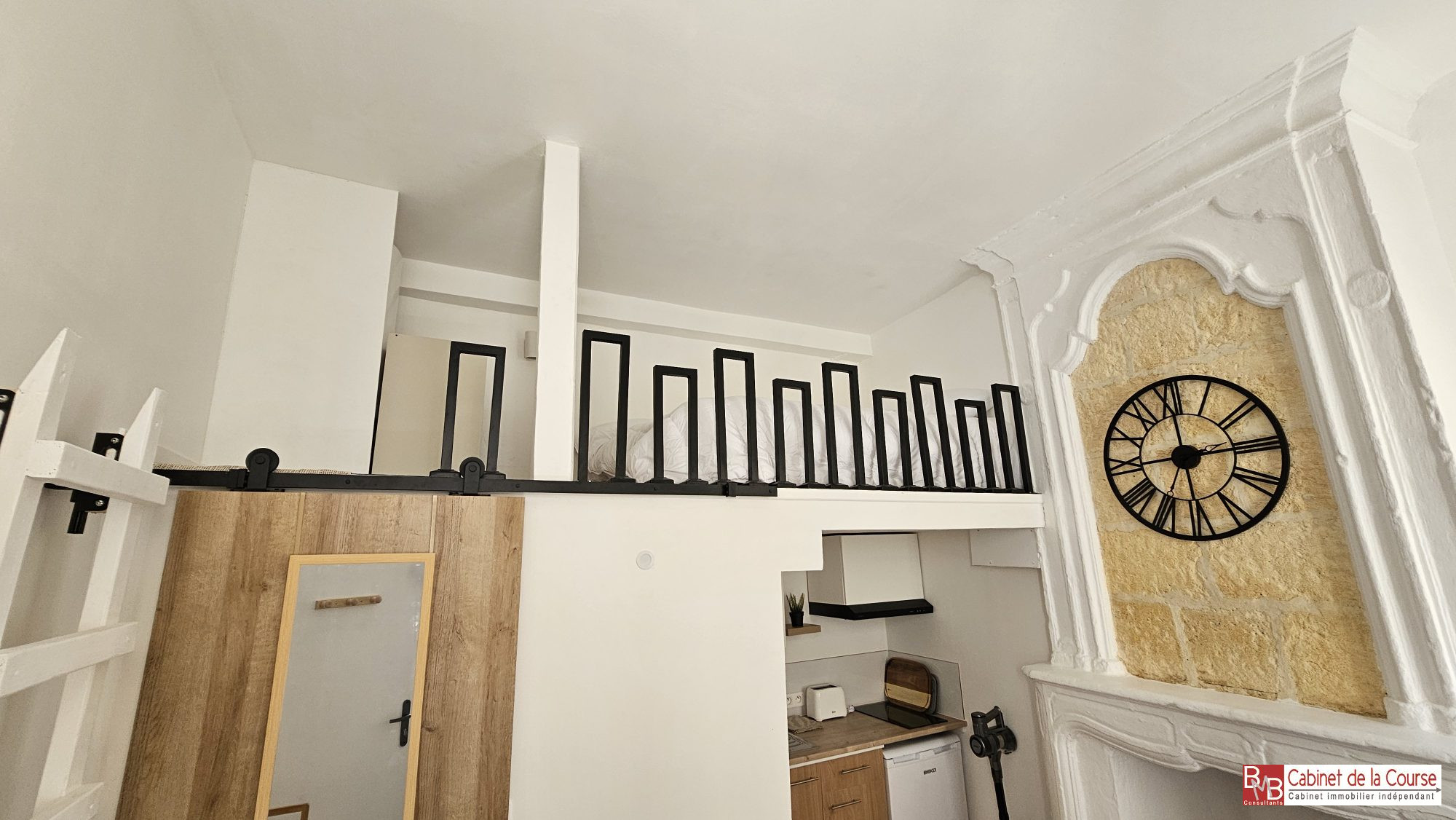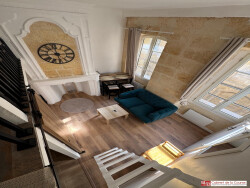Au premier étage d'un immeuble pierre, T1 bis de 26,92 m² composé d'une pièce principale avec cuisine aménagée et équipée ouverte, mezzanine, salle de bains avec wc.