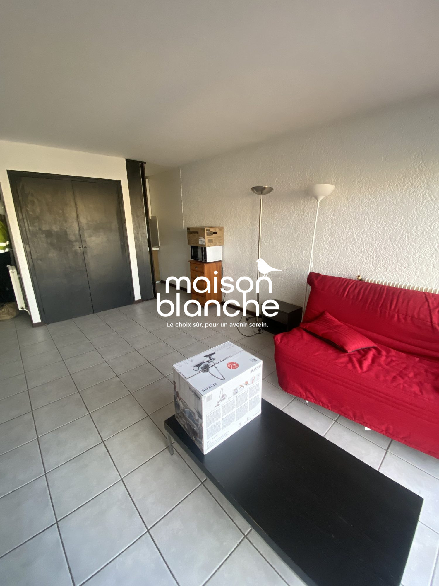Au premier étage d'un immeuble pierre, T1 bis de 26,92 m² composé d'une pièce principale avec cuisine aménagée et équipée ouverte, mezzanine, salle de bains avec wc.