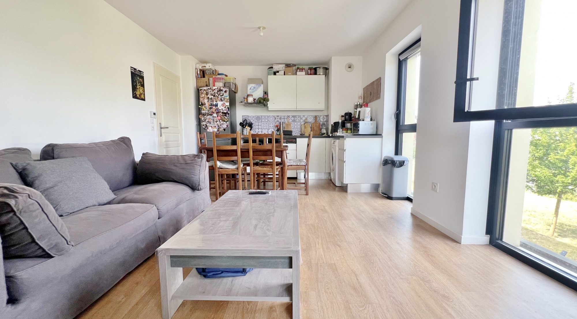 Séjour exposé sud-est de 21,84 m² avec cuisine ouverte et fonctionnelle