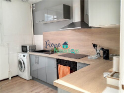 Apt meuble Bolbec proche centre ville : entrée, cuisine aménagée et équipée, séjour/salon, coin chambre, salle de bains
