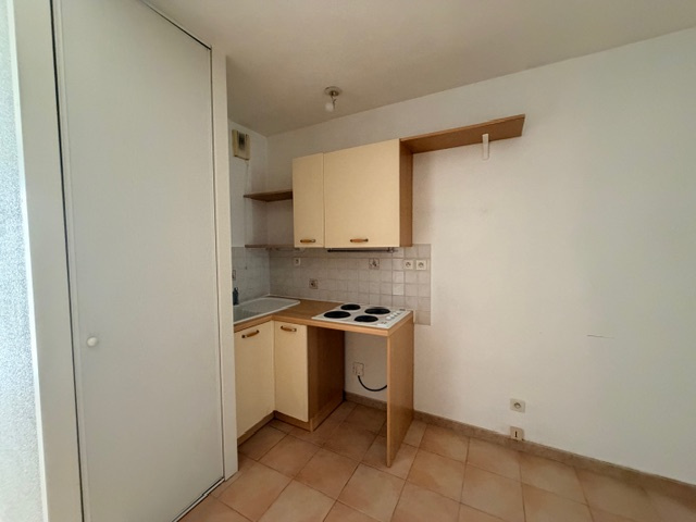 Situé au premier étage, appartement de type T1 bis d'une surface de 33 m² comprenant une pièce de vie lumineuse, une cuisine aménagée et équipée indépendante, un coin nuit, et une salle d'eau avec WC .