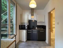 Il comprend une pièce à vivre avec son espace nuit prolongée par un espace comprenant une cuisine aménagée et équipée (hotte, plaques induction, réfrigérateur et micro-ondes) et une salle d'eau avec wc.