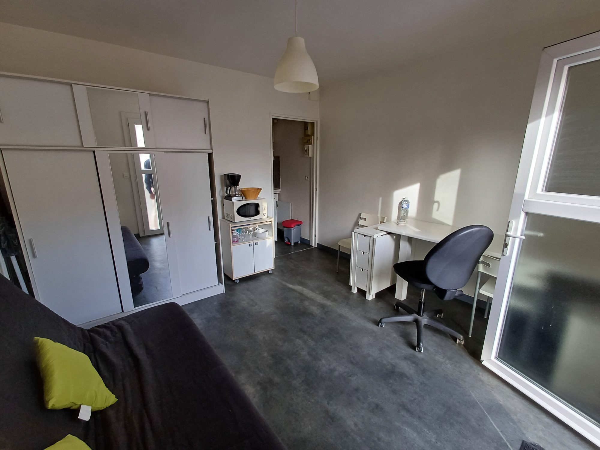 Grand T1 libre à la vente, idéal pour investisseur Au sein d'une résidence sécurisée, au 1er étage avec ascenseur Il comprend : une entrée avec placard, une salle de bains avec WC, un coin repas, une cuisine et un séjour. Nécessite travaux de rafraîchissement Charges annuelles faibles (440 dont 240 récupérables en charges locatives)