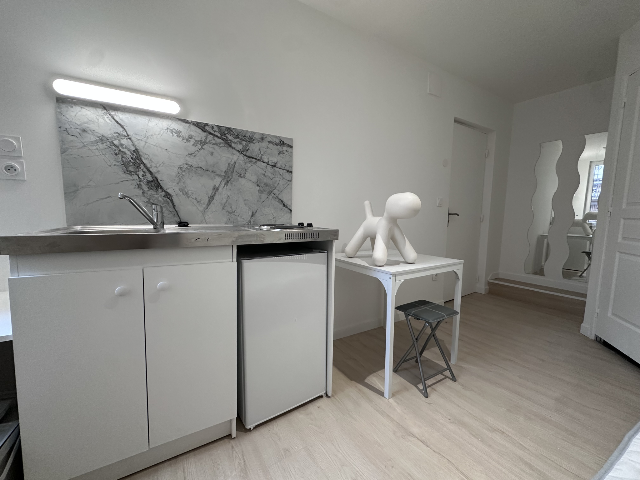 Hyper centre, idéal étudiant au 3eme et dernier étage d'un petite immeuble situé rue des gras, appartement T1 (surface au sol 30m2) comprenant entrée, salle d'eau avec wc, pièce de vie avec kitchenette équipée, mezzanine avec coin nuit . libre. Loyer 340 +60 de provision pour charges avec régularisation annuelle